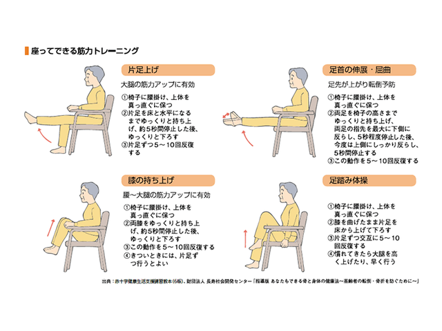 ですので、テレビなどを見ながら下肢筋力訓練をするのも有効です。